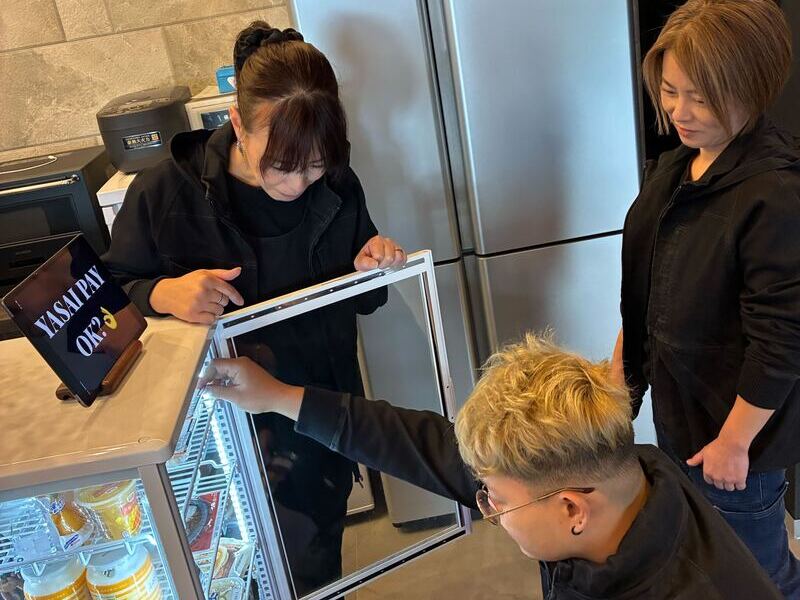 お金の支払い忘れがないように、会社でiPadを準備して設置しています。そのiPadに「お支払いをお願いします」といったメッセージを常に表示させています。また、消費期限が近いものなどもiPadで表示させて、購入を促しています。