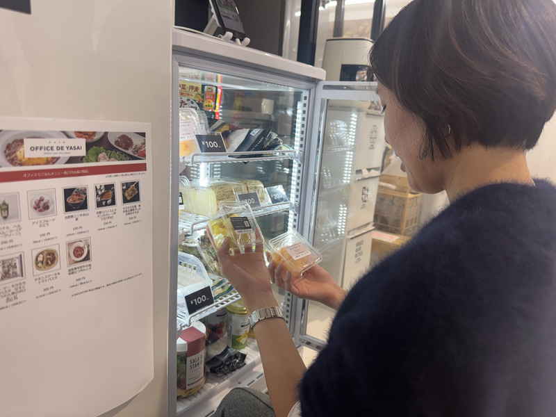 オフィスにジムがあるので、プロテイン系のメニューがもっと充実すると、さらに需要があるかもしれません。また、冷凍庫の中身が少し分かりにくいので、その点が改善されると嬉しいです。